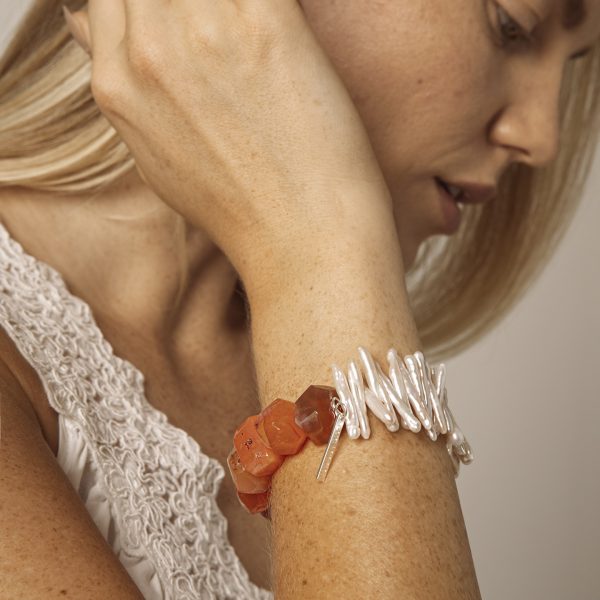 Red Persian Agate & Freshwater Pearl Bracelet